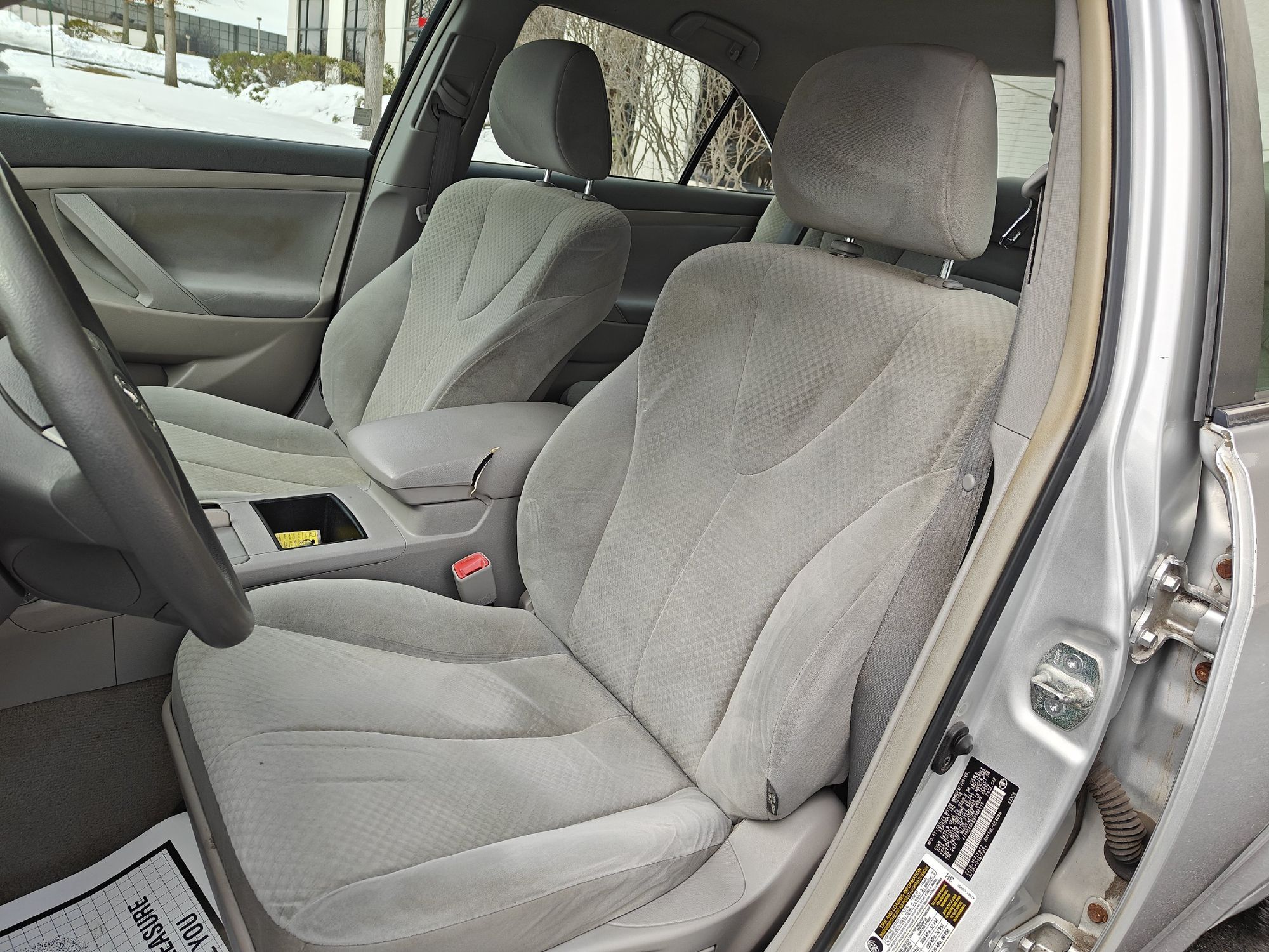 Front seatback upholstery: Plastic front seatback upholstery