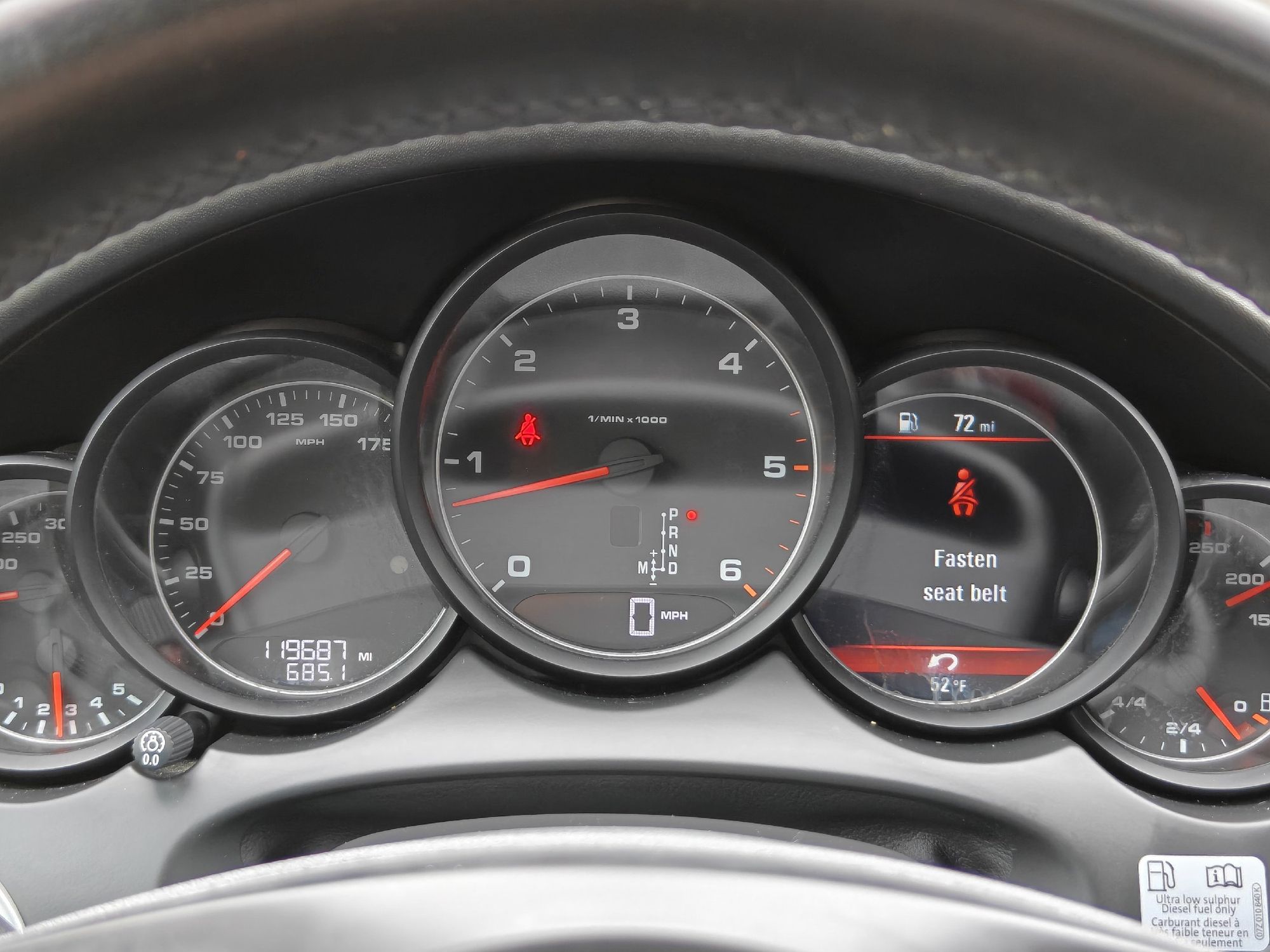 Low level warnings: Low level warning for oil, coolant, fuel, washer fluid and brake fluid