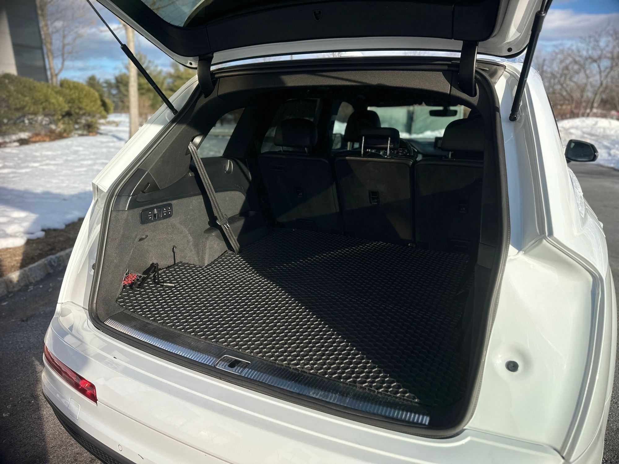 Third-row seatback upholstery: Carpet third-row seatback upholstery