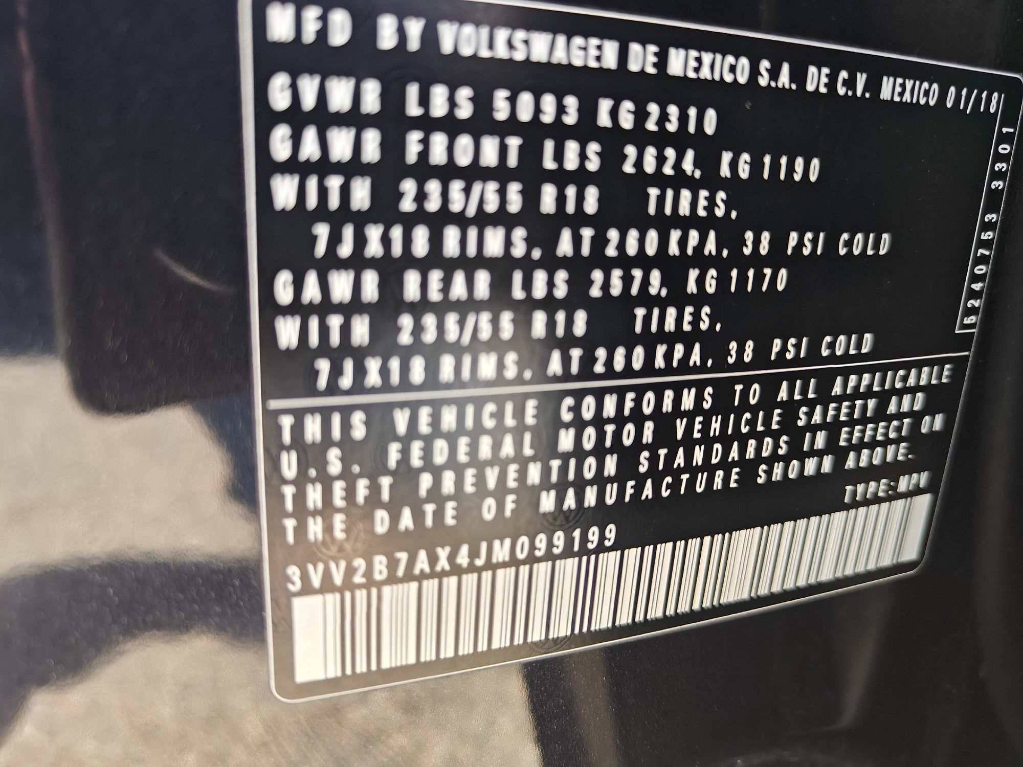 Maximum roof rack load: 165 lbs. maximum roof rack load