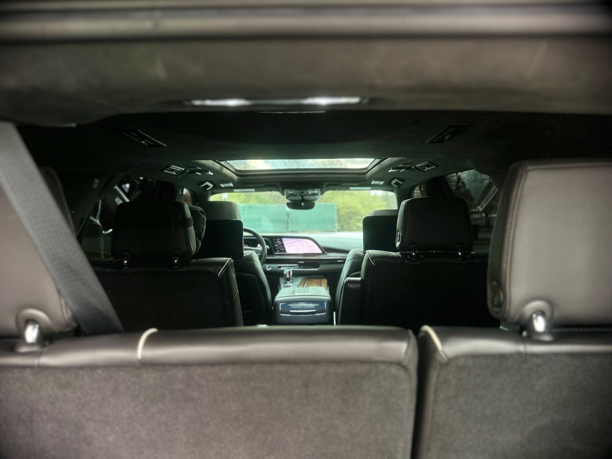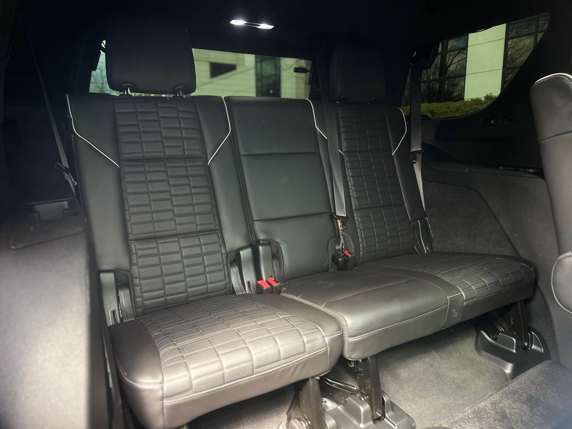 Third-row seatback upholstery: Carpet third-row seatback upholstery