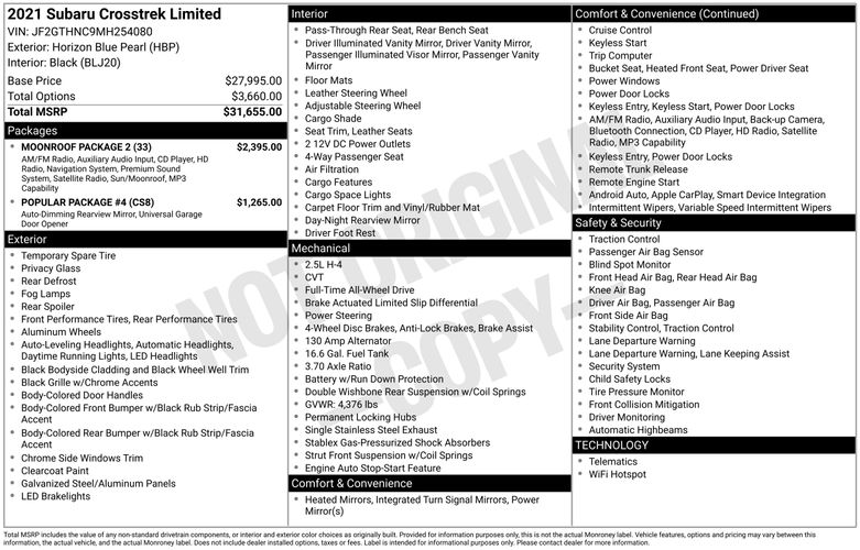 Includes Subaru STARLINK 8.0 inch Multimedia navigation system, voice-activated controls, Traffic and Travel Link, 8 Harman Kardon speakers with 432-watt Harman Kardon amplifier, and power tilt/sliding-glass moonroof with manual sunshade.