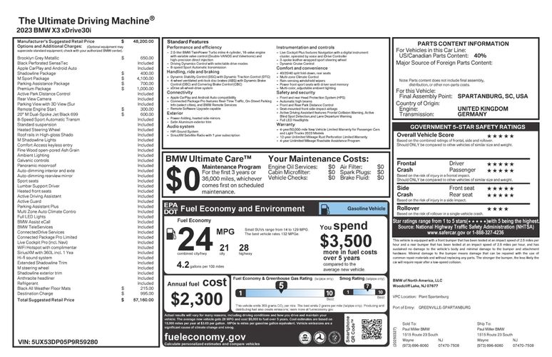 Seating capacity: 5