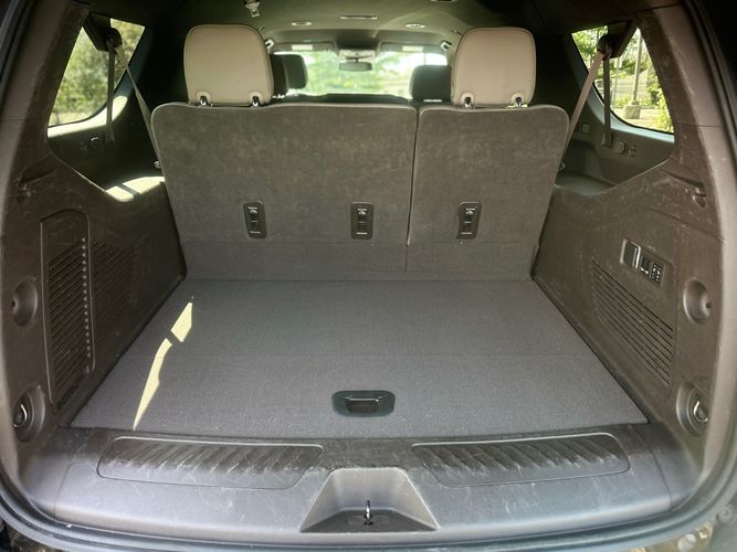 Third-row seatback upholstery: Carpet third-row seatback upholstery