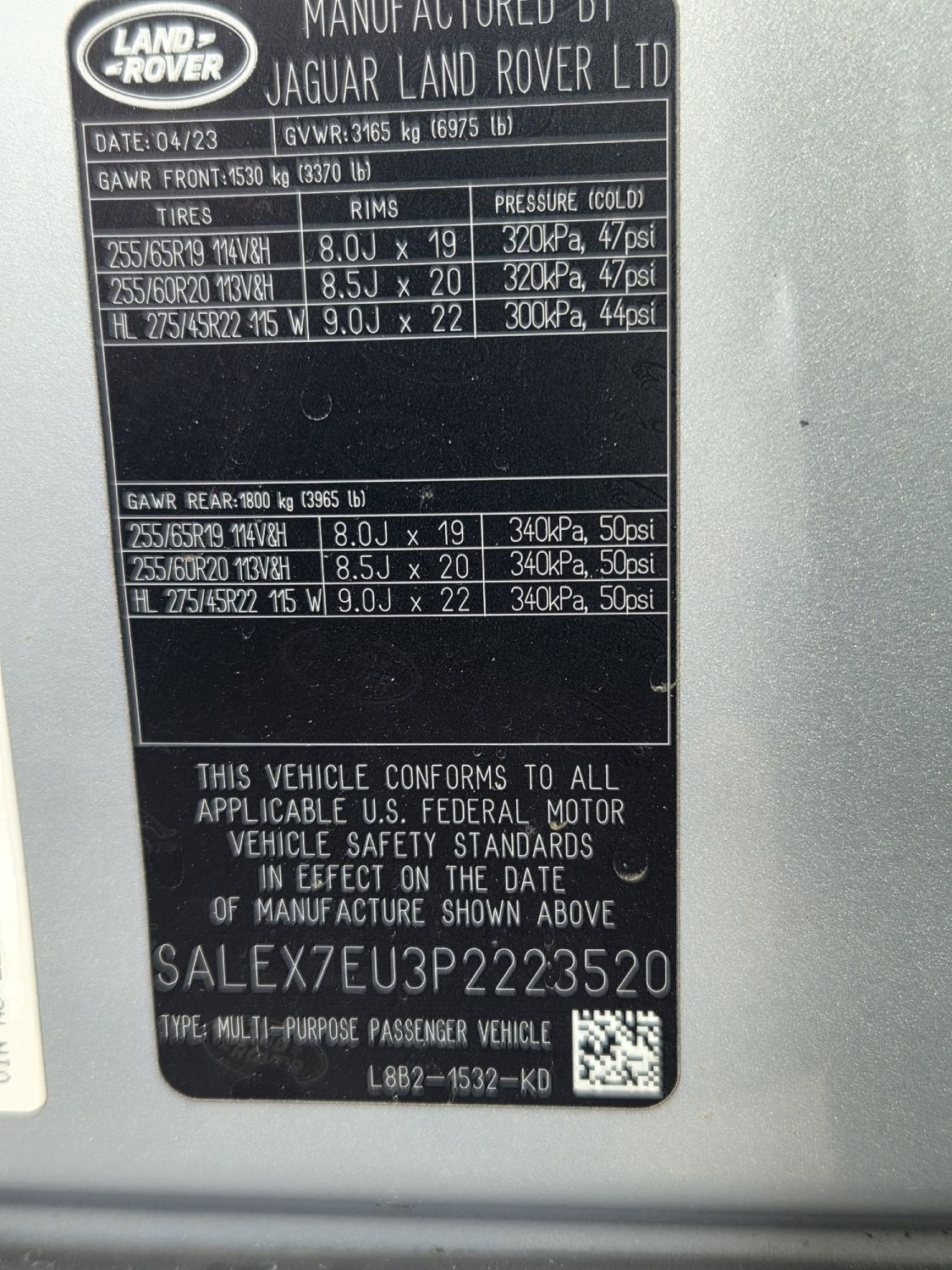 Maximum roof rack load: 220 lbs. maximum roof rack load