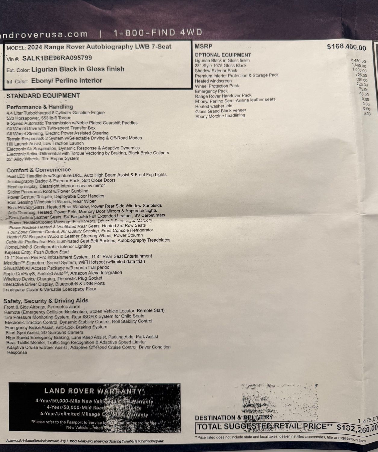 Front seatback upholstery: Leather front seatback upholstery