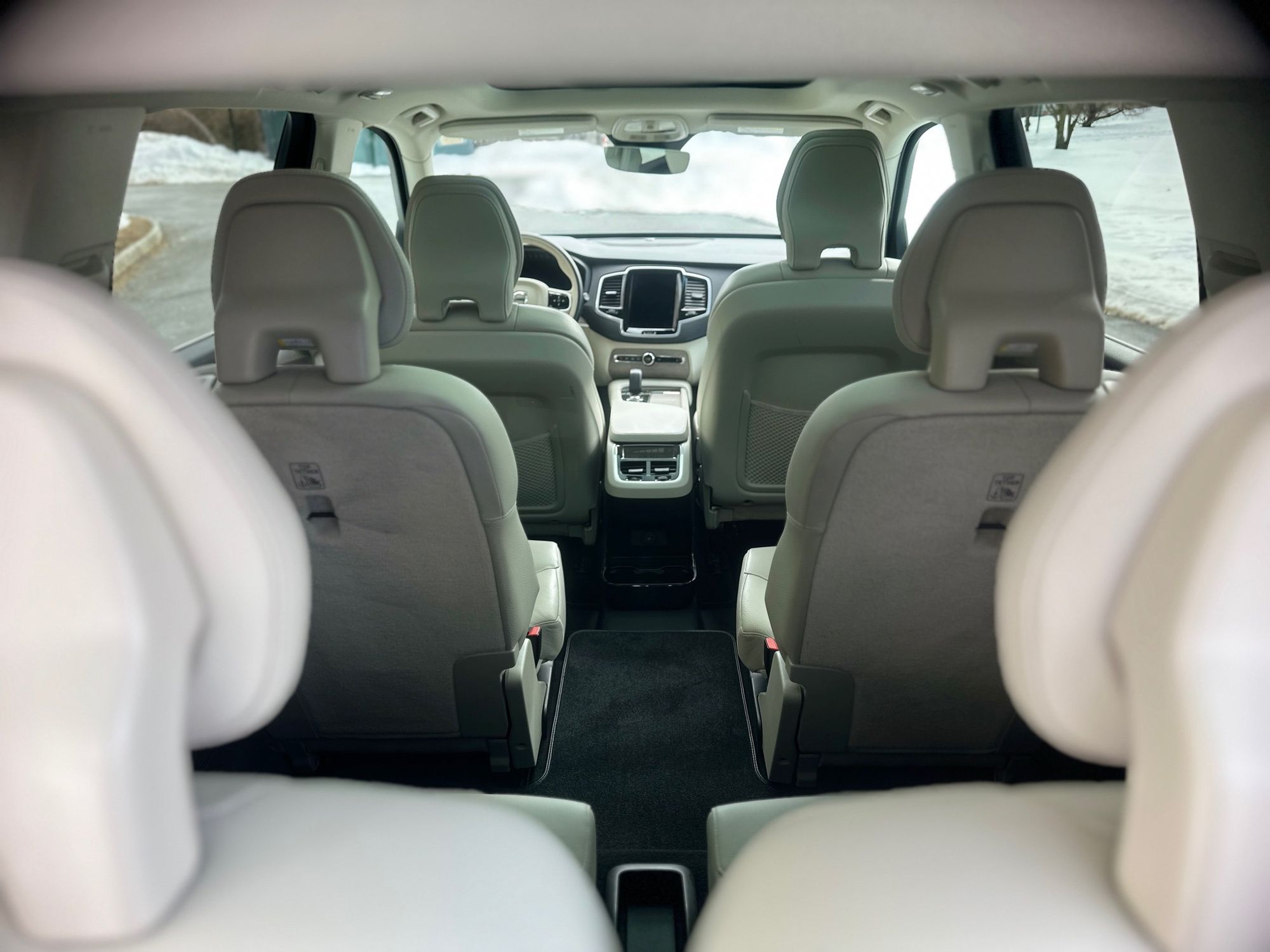 Third-row seatback upholstery: Carpet third-row seatback upholstery
